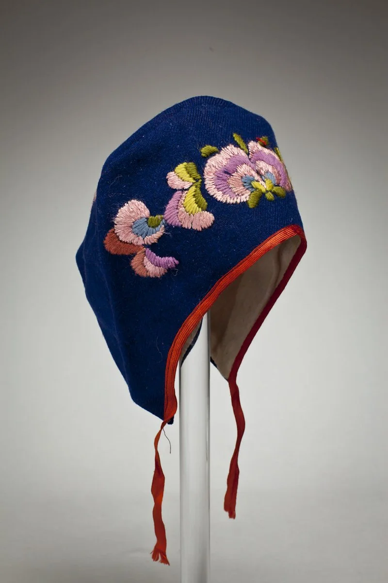 A girl’s cap from a Norwegian bunad outfit (modern folk costume). Though bunad refers to 20th C costumes that are loosely derived from traditional rural clothing, each region has its own unique designs.