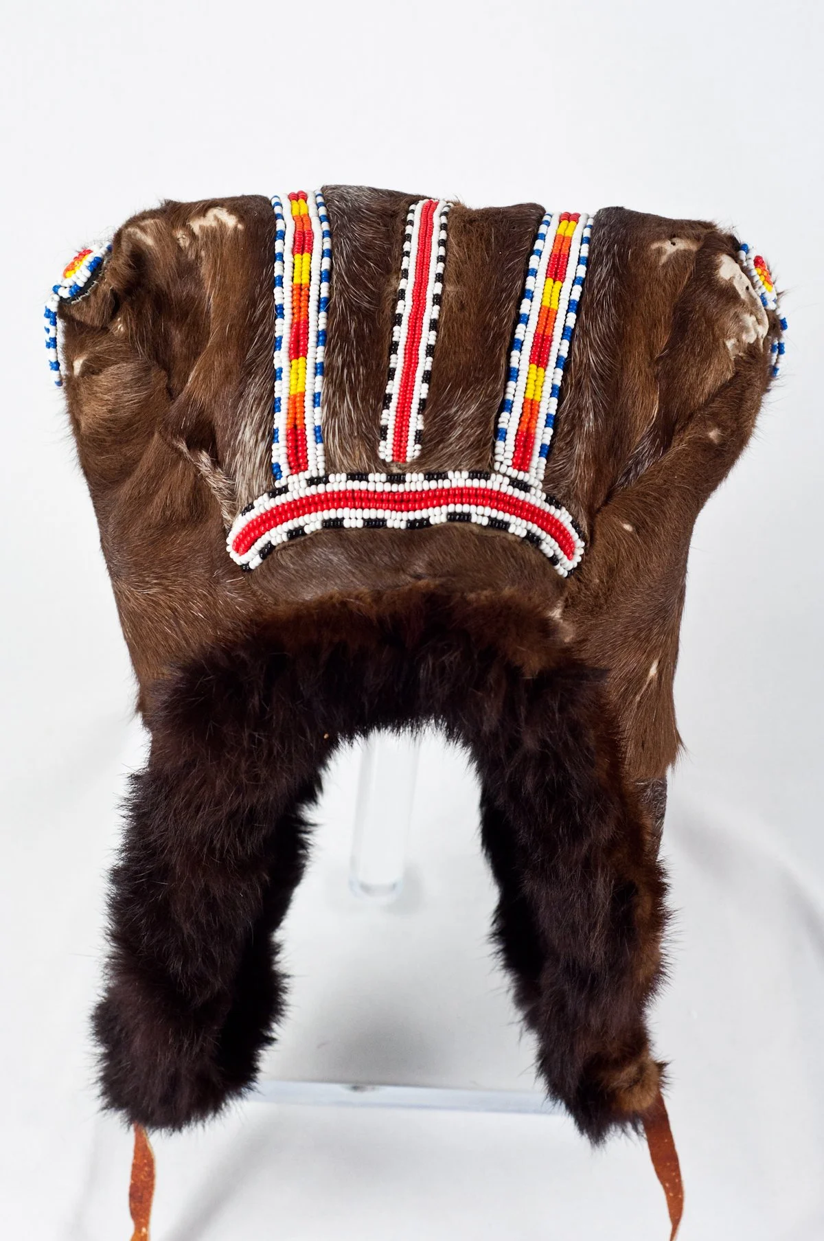 The Koryak people live in northeastern Siberia and have historically relied on reindeer as their primary source of food and clothing. Living on the tundra, an extremely cold and windy environment, requires special clothing and the Penkin is lined inside and out with fur for extra warmth.